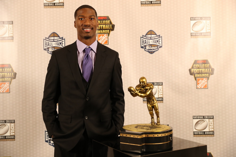Dede Westbrook and the Biletnikoff Award Trophy